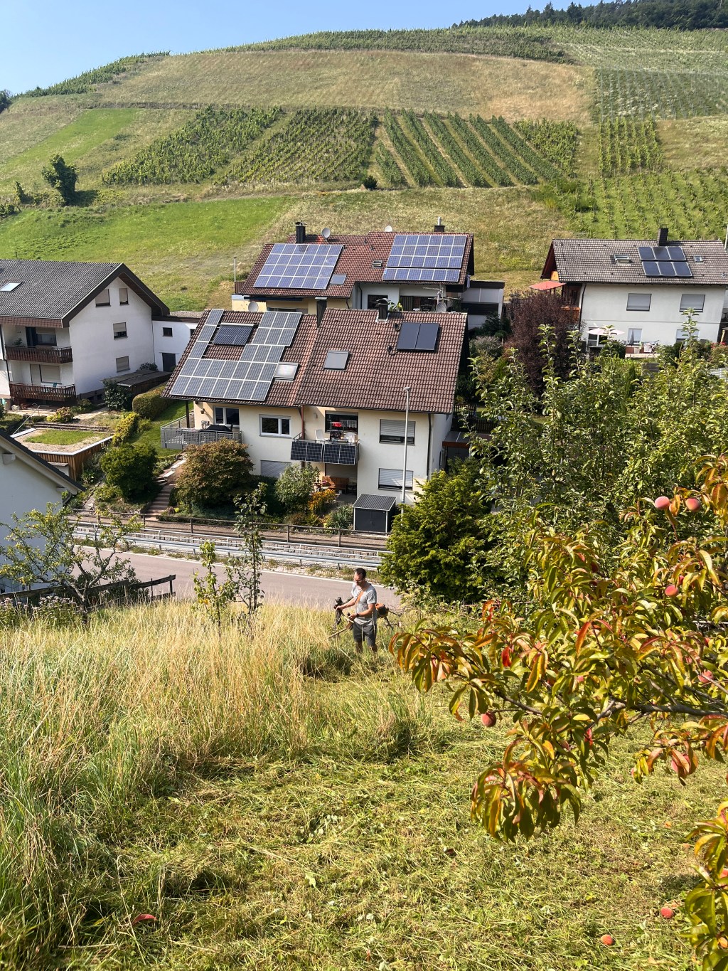 Durch die regelmäßige Pflege bleibt die Wiese verkehrssicher, ökologisch wertvoll und optisch ansprechend. Gleichzeitig wird der Streuobstbestand geschützt und die Fläche nachhaltig bewirtschaftet – auch unter anspruchsvollen Geländebedingungen.